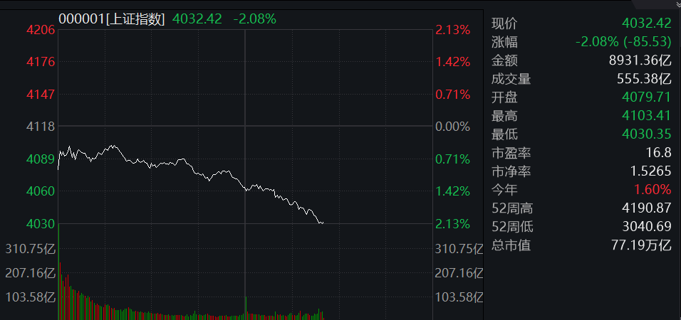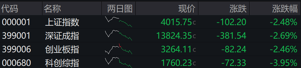 14:41 A股三大指数均跌超2%,全商场超4400只个股着落。
