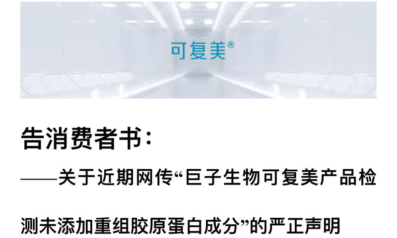 面临质疑,可复好意思连夜发布“告耗尽者书”,称其已第一时刻对干系居品进行检测,多批次居品检测结果娇傲,胶原卵白含量均大于0.1%,与网传的“0.0177%添加量”严重不符。